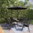- Comes with – 1x table, 6x chairs, 1x parasol