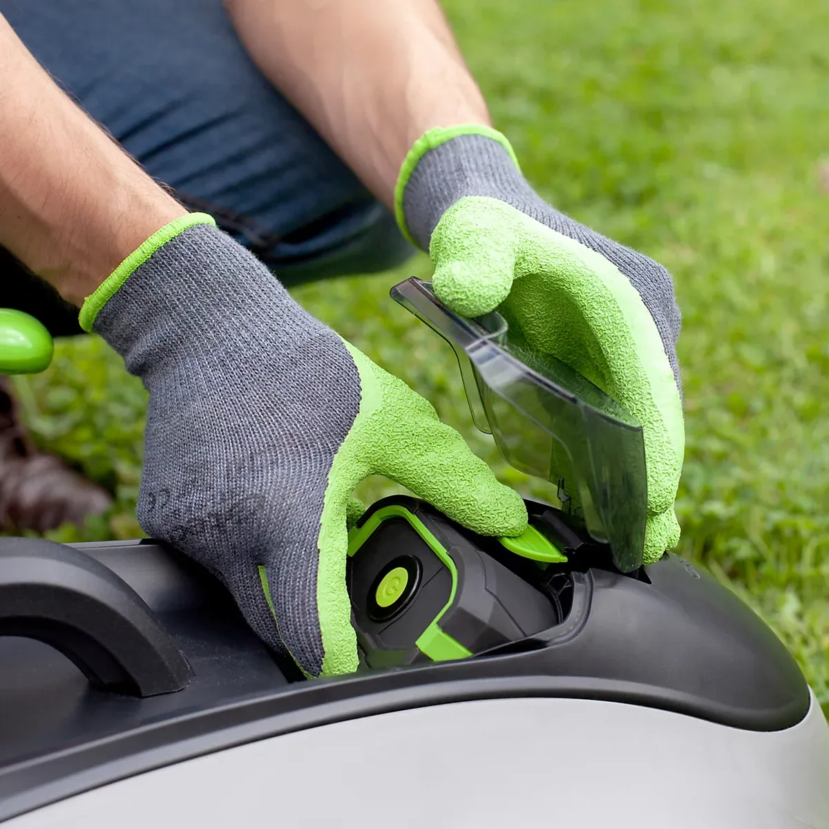 Take full control over the look of your lawn with the adjustable cutting mechanism. Whether it’s a quick tidy up or the first cut of the season, with a choice of 10mm increments between 30mm and 80mm, there’s a setting for every occasion. With no tricky set up, you’ll be good to go in no time. Simply insert the battery, push in the activation button, and pull the lever. The CLM50’s operational key must also be in the ‘on’ position as an extra safety feature, ensuring no accidental starts. Your safety is our priority. The CLM50 features an operational safety key, which has to be in the ‘on’ position for the mower to start, and can be turned to ‘off’ when storing the lawnmower. Then, with its two-step start, simply push in the activation button and pull the lever, then go! The intelligent blade in our cordless lawnmower runs at 2800rpm, but when it senses that extra power is required, it rotates faster to 3500rpm. We want to make sure that you get all the power you need, whenever you need it. With a cutting width of 420mm on the CLM50’s single blade, you can get into every corner and reach the edges of your lawn for a precise finish.