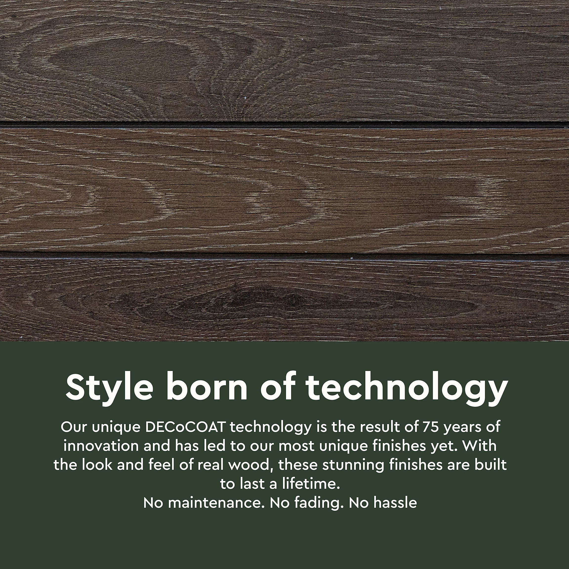 - Made of durable, zero maintenance, UV protected and fade-free DecoCoat composite