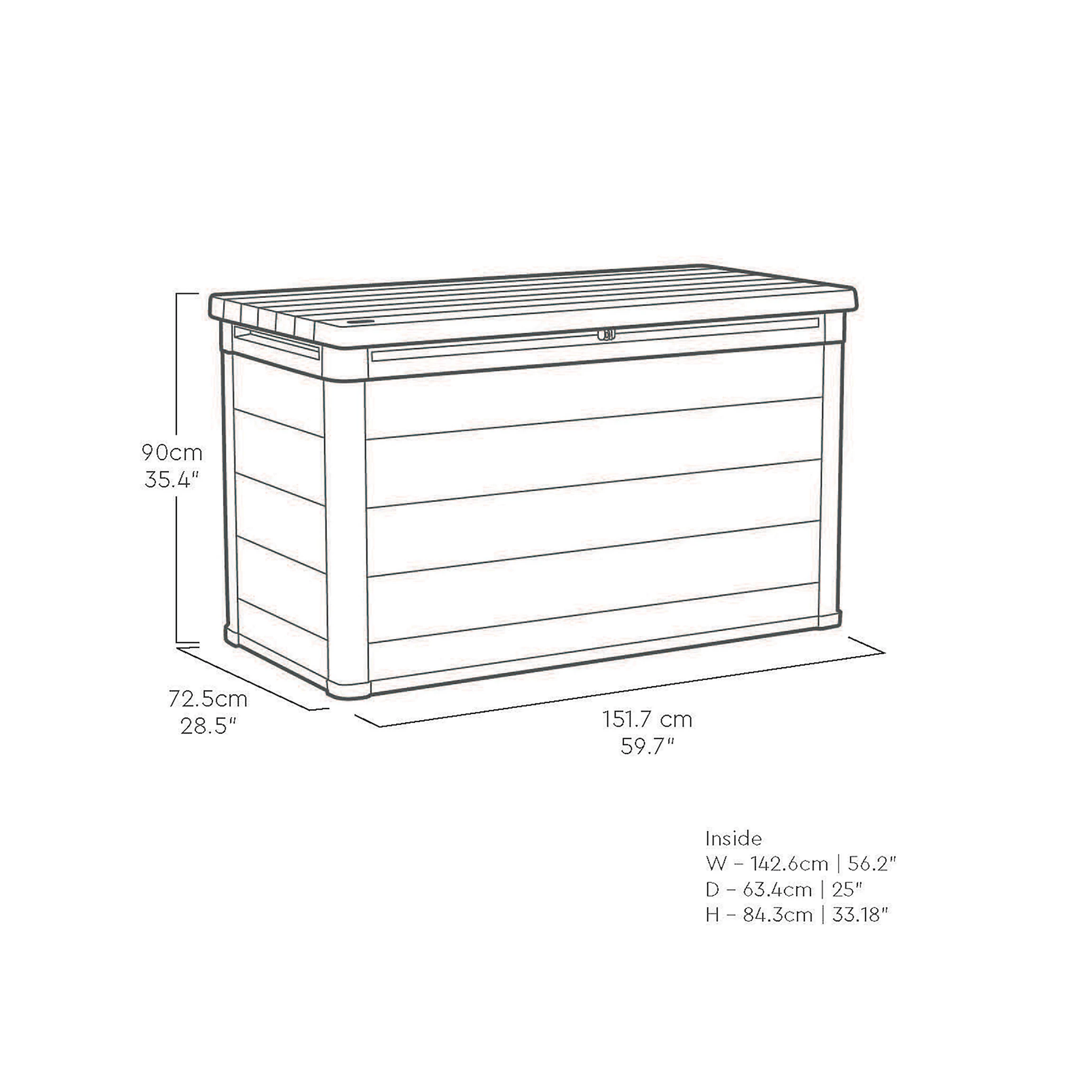- Assembled external dimensions: 151.7 x 72.5 x 90cm (W x D x H) Internal dimensions: 142.6 x 63.4 x 84.3cm (W x D x H)