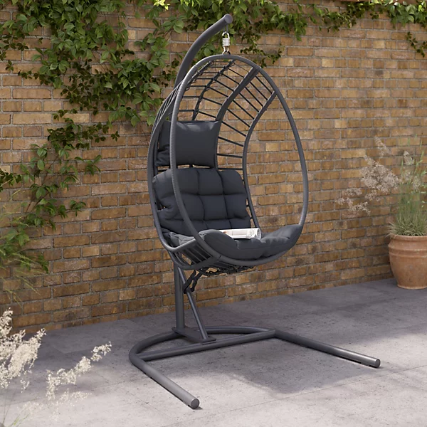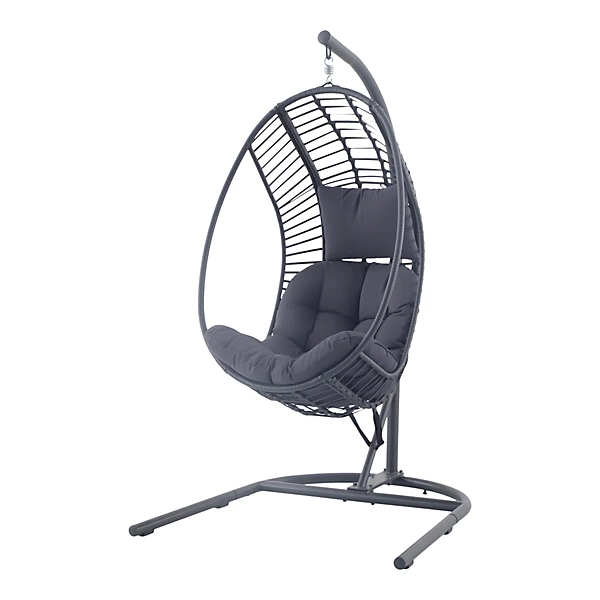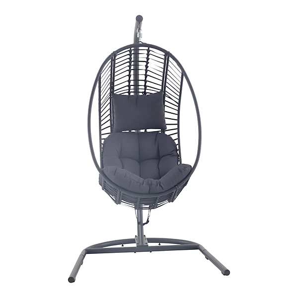 The Maeria hanging chair is ideal for relaxing outdoors. The entire frame is wrapped with rattan, which makes it easy to maintain.