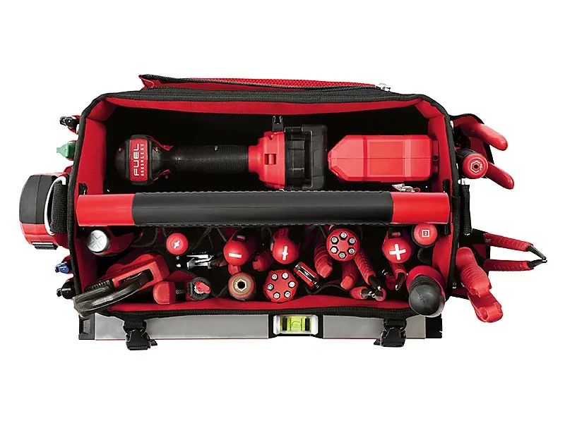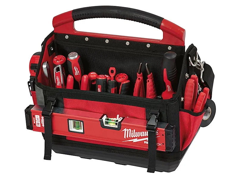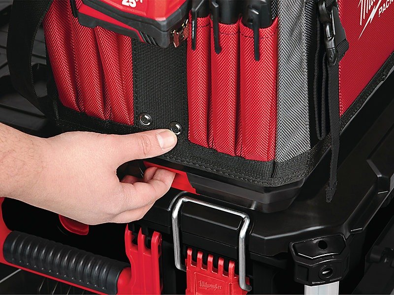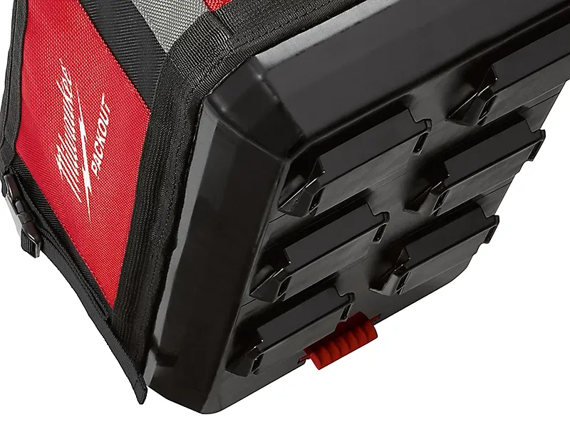 This Milwaukee Hand Tools PACKOUT Tote Tool Bag has the following specification: Dimensions: 250 x 400 x 320mm Number of Pockets: 31 The Milwaukee Hand Tools PACKOUT Tote Tool Bag has a 1680D ballistic nylon construction and an impact-resistant moulded base. The tote features durable all-metal hardware. Fitted with a comfortable and overmoulded handle. Part of the PACKOUT modular storage system.
