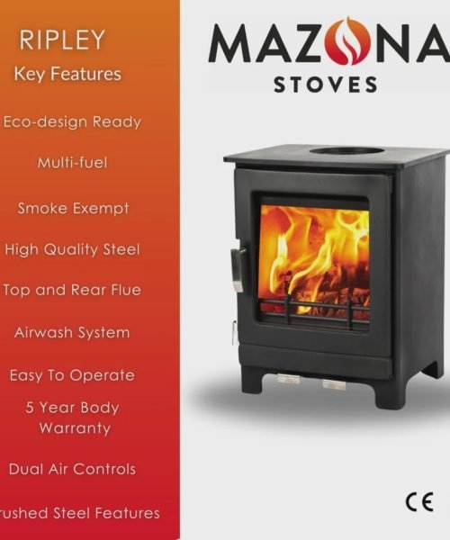 Mazona Ripley 4kW Multifuel Woodburning Stove, Freestanding, Eco Design Approved, Defra Approved